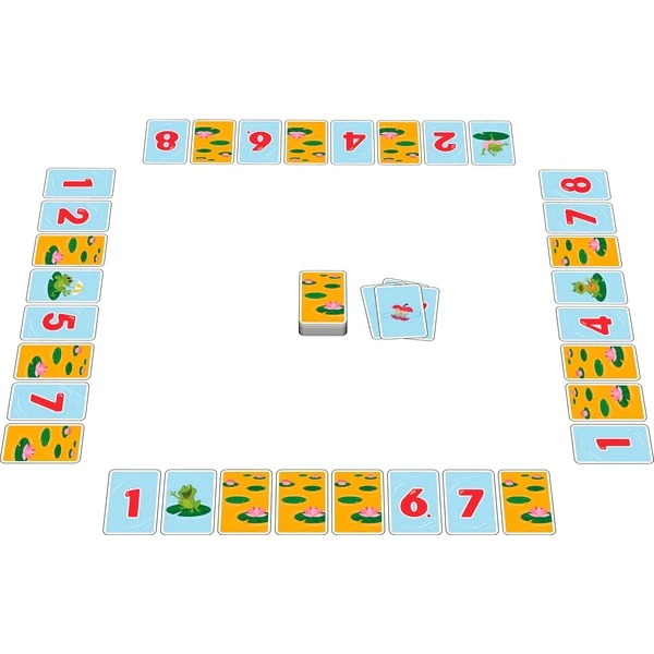 Die Fröschis hüpfen los! 2-4 Spieler sollen die Zahlenwerte der eigenen Kartenreihe mit Hilfe der Fröschis aufsteigend anordnen. Gar nicht so einfach, wenn in dem Teich auch noch unnütze Dinge herumschwimmen, die so gar nicht in die Zahlenreihe passen. Da müssen geschickt die Karten getauscht werden – dann kann man sich über die grossen Sprünge der Fröschis freuen.Art.-Nr.: 1919248