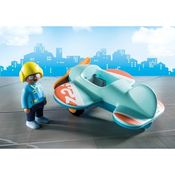 | Inhalt/Ausstattung | Spielset mit einem PLAYMOBIL 1.2.3 Piloten und einem Flugzeug mit drehbarem Propeller. | ||